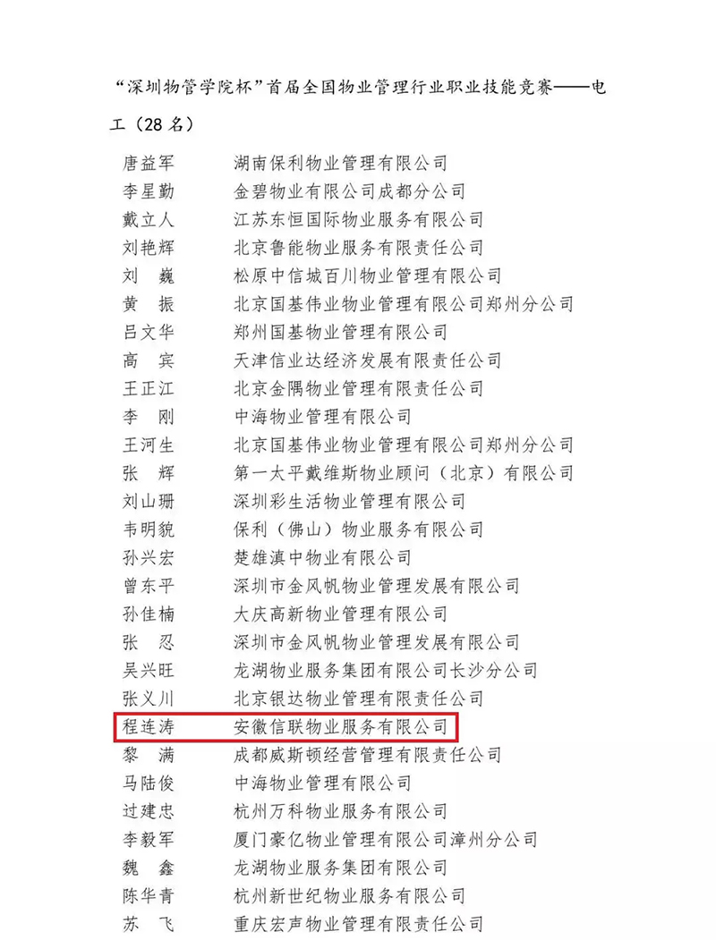 在電工職業技能競賽期間,程連濤表現出的高超技藝和對工作專注、執著的精神令人敬佩,完美地詮釋了物業管理行業的工匠技藝和精神。
