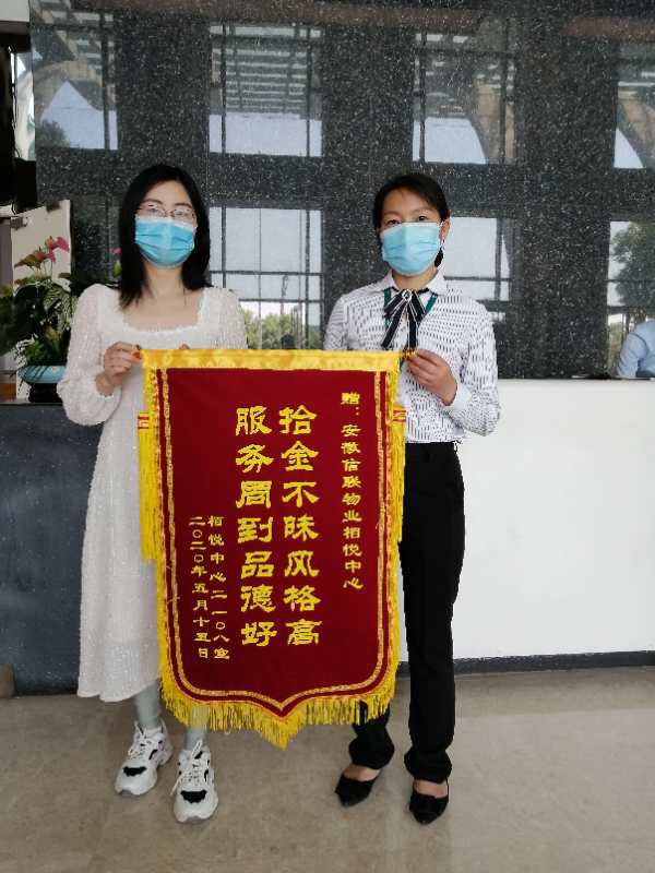 最后于15日上午10時30分左右核實(shí)確定失主身份,業(yè)主當(dāng)時眼中難掩興奮,感激地說:“非常感謝你們,我粗心大意丟失了挎包,本以為被人拾去后肯定找不回來,但做夢也想不到,挎包竟然還能找回”。她深深被信聯(lián)物業(yè)員工這種拾金不昧的高尚品質(zhì)所感動,當(dāng)場就對物業(yè)員工拾金不昧的誠信品質(zhì)連連表示感謝。特定制錦旗表達(dá)對王春香及對我們信聯(lián)物業(yè)的感謝和肯定。