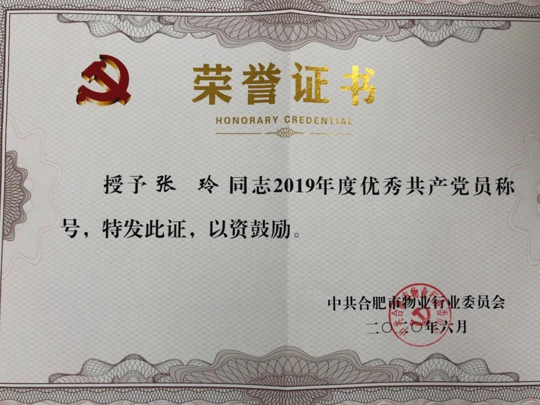 會議對20個先進黨組織,38名優秀共產黨員進行表彰通報。其中安徽信聯物業服務有限公司張玲榮獲“優秀共產黨員”稱號。