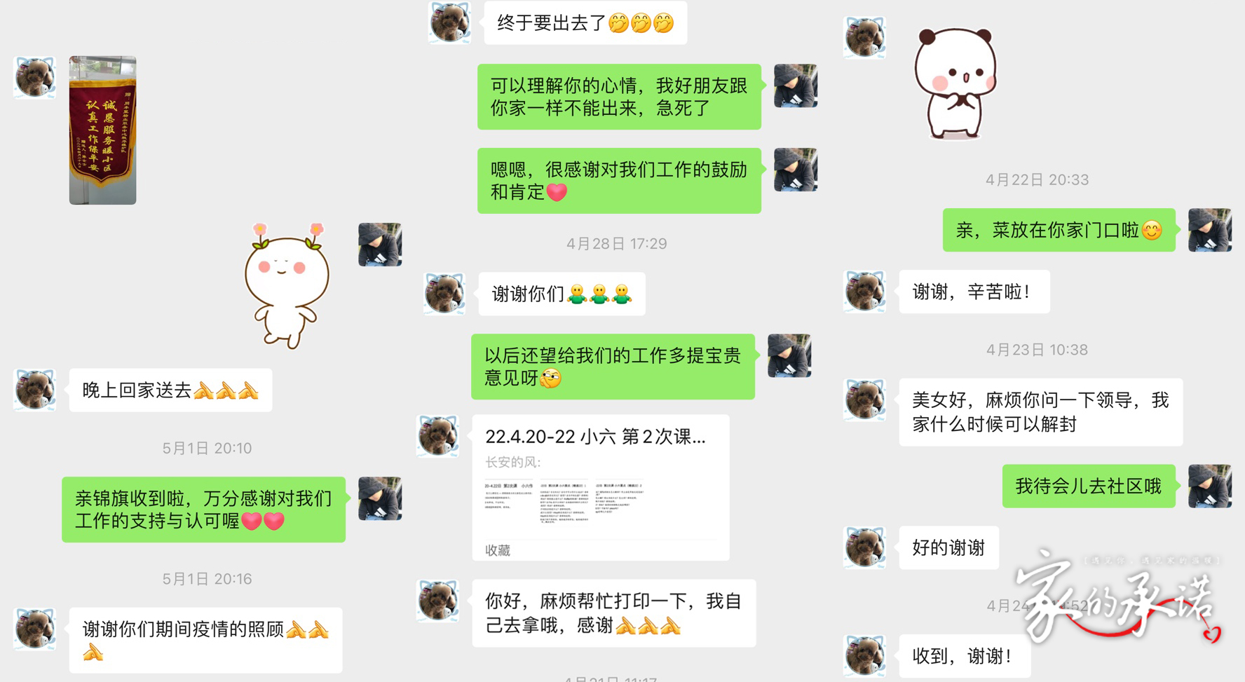 “謝謝,非常感謝”成為疫情期間和管家聊天中的高頻詞,每一位信聯物業人,從生活點滴出發,將溫暖傳遞至每一位業主們手中。當每一個笑容呈現在眼前,那些曾經對美好生活的責任與承諾才更具意義。