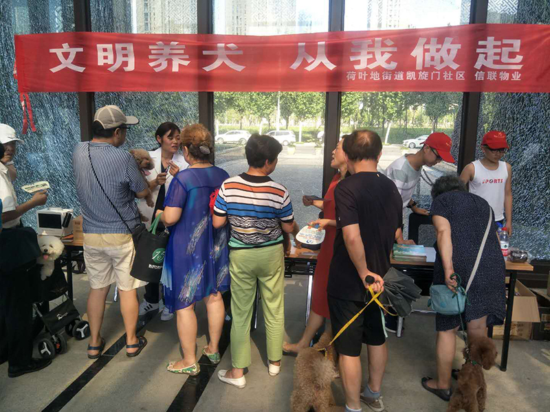 8月30日下午,信聯物業置地廣場管理處聯合荷葉地街道凱旋門社居委在栢悅公館小區開展了一系列文明養犬宣傳活動,倡導文明養犬,宣傳培養養犬人的良好習慣,以更好的促進小區和諧氛圍建設。