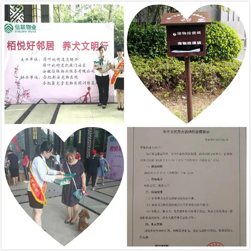文明養犬的宣傳是一個長期的過程,希望通過我們的努力,給小區業主營造一個良好的居住環境,避免及減少養犬人與非養犬人之間的矛盾,通過此次活動,促使業主認識到依法、文明、科學養犬的重要性,也同時增強愛護家園、美化環境從我做起的意識。信聯物業在此倡議,希望廣大愛犬人士盡職盡責做文明養犬人!