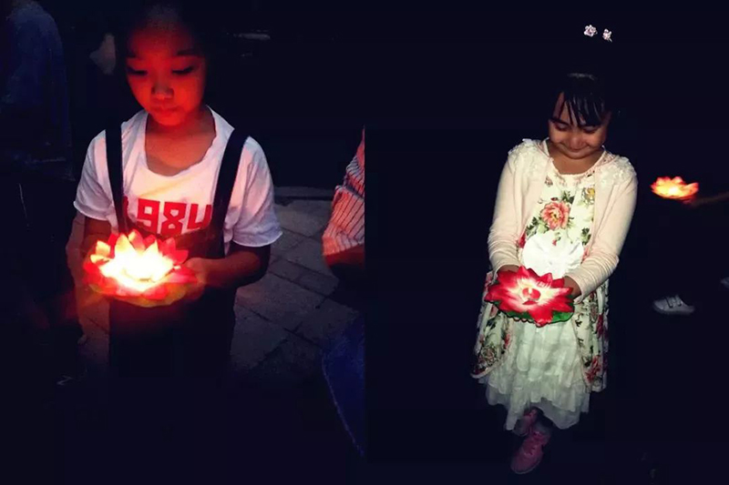 再一起將一個個花燈陸續放入水中