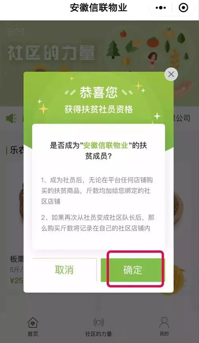03點擊確定,成為信聯物業扶貧成員